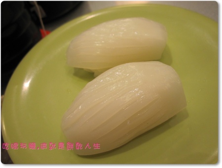 花枝握壽司,Q彈的花枝,在配上一口大小的米飯握壽司,一口塞好滿足~