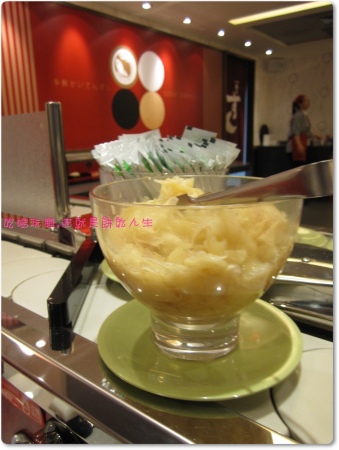 還有旋轉台上的薑片也是一定要的,每每經過我們前面,就被大家夾到不到一半